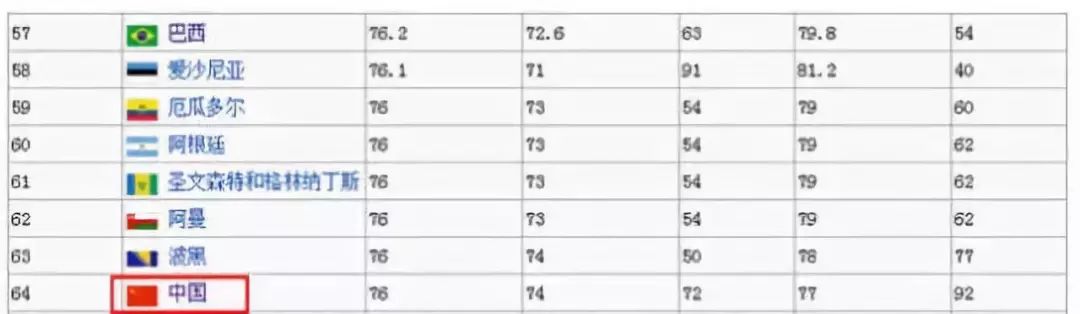 中国以65.1的成绩排名46位,相比于去年却掉了一个名次。