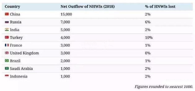 根据亚非银行和“新世界财富”联合发布的《2019世界财富迁徙报告》,2018年全年,中国共有15000名高净值人群移民,数量超过了第二名俄罗斯和印度的总和,占到了全球数据的七分之一。