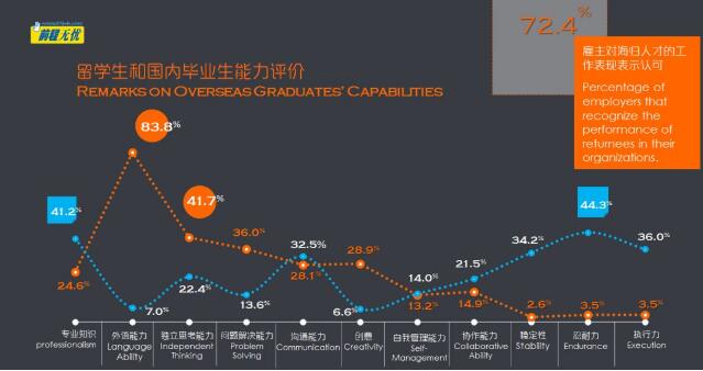海外留学生在外语水平、独立思考和创意上比国内毕业生普遍有优势,国内毕业生在相关知识、忍耐力和执行力上表现更佳。