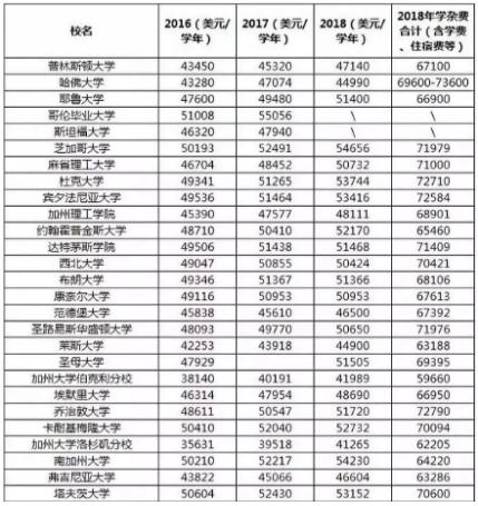 U.S.news曾对美国的近2000所大学的学费进行了统计,数据显示:美国大学2018-2019年的学费平均上涨了3%,甚至有些学校的涨幅,超过了10%。大部分大学一年的学费已经突破50,000美元,而名校基本处于60,000美元以上的梯队。