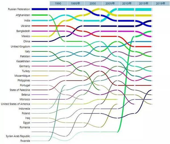 对比2018年数据,当时中国正生活在国外的移民为近1000万,位列世界移民输出国第四位。