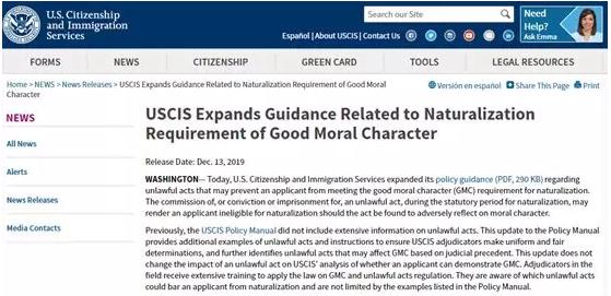 12月13日,美国公民及移民服务局对外公布了新的政策指导: