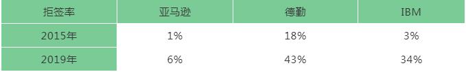 NFAP的数据还显示,从雇主角度来看,2015年和2019年首次申请H-1B签证拒签率也有相当程度的上升。例如: