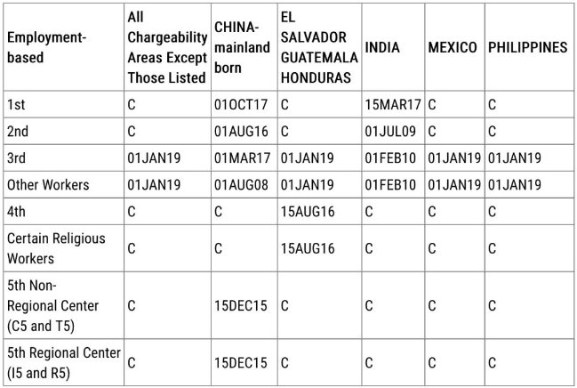 表B:如果你的优先日在表B排到的优先日之前,那么你将开始走NVC(美国国家签证中心)的签证申请流程,也就是递交DS-260表。对申请人已在美国合法居留超过90天的,能否直接递交I-485转换身份,需要看排期公布后移民局的后续通知,一般一周左右公布。