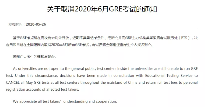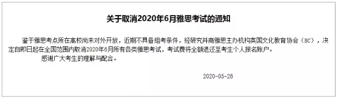 中国教育考试网发布最新消息:6月雅思、托福、GRE、GMAT中国大陆地区相关考试全线取消!