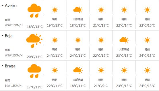 葡萄牙晴天居多,年平均日照达3000小时,即使在冬天也仍旧气候宜人。