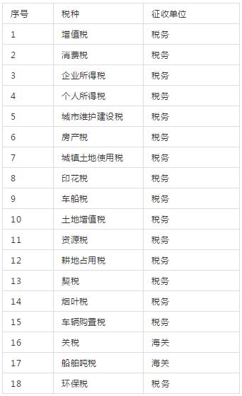 在我国,目前现行有18个税种:
