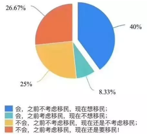 “疫情会否改变移民意向”调查显示,40%的受访者表示之前不考虑移民,但现在想移民。