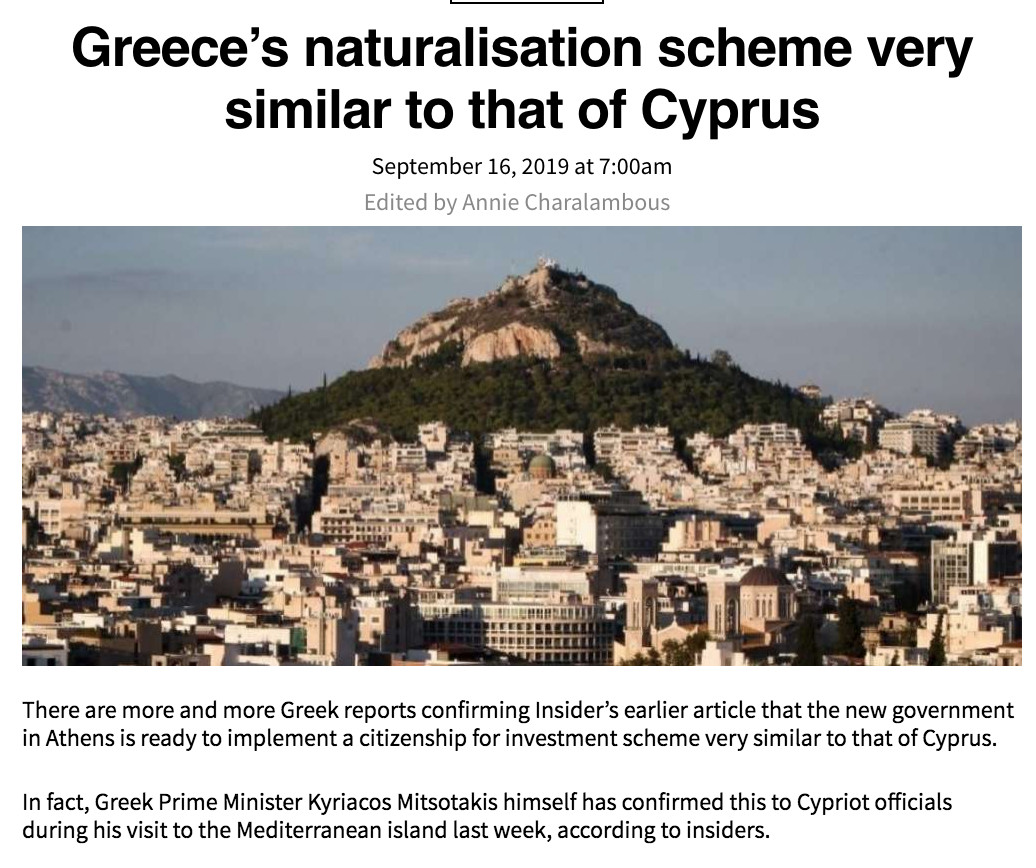 有报道称,希腊政府计划推出一项类似塞浦路斯的投资公民计划。近年来,塞浦路斯的投资入籍计划对国家的经济复苏作出了重大贡献。上周希腊总理访问塞浦路斯时向塞官员确认此事,引起塞方强烈关注。
