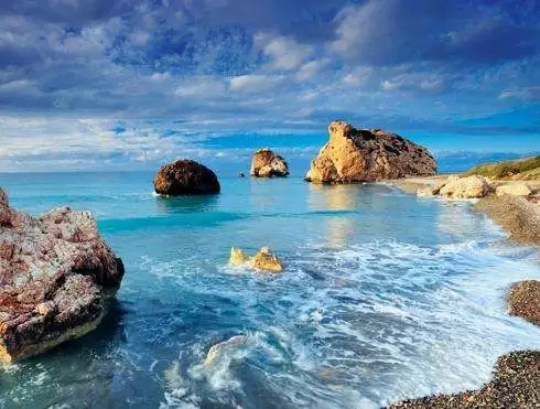 塞浦路斯还很浪漫:帕福斯——爱神岩,相传爱神阿芙洛狄特(维纳斯)就是在这附近,从海水的泡沫中诞生的,故又称“爱神岩”。