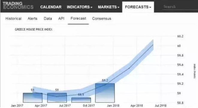 据权威机构Trading Economics对希腊2018年房产价格指数的预估显示,希腊的房价指数将保持持续上升的状态。