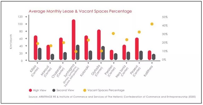 2017年-2018年雅典市中心的商铺需求得到很大的回升,位于市中心和富人区商业街的商铺空置率低于10%。