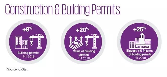 2018年上半年, 塞浦路斯建筑许可继续呈现上升趋势,数量增长8%,价值增长20%。同期相比,塞浦路斯拉纳卡的增量最高,达25%。