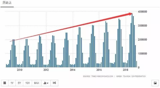 2018年希腊国际游客数量和旅游业收入均创下历史最高纪录。根据央行最新数据,2018年到访希腊的国际游客数量达到3300万,同比增长10.8%,旅游业收入超过161亿欧元,同比增长10.1%,连续10年希腊的旅游人数屡创新高,为希腊带来源源不断的旅游收入。