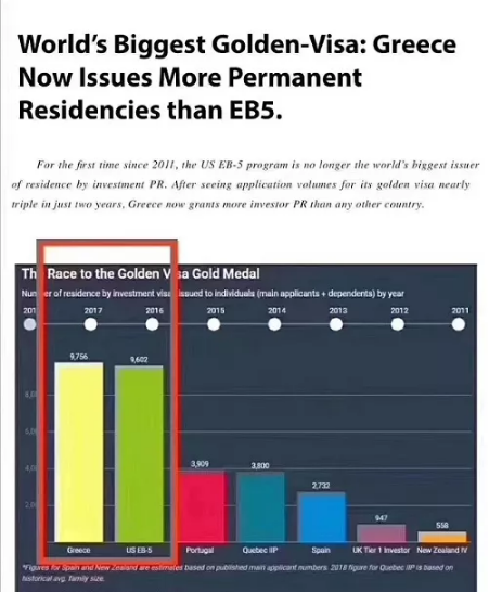 目前为止,希腊已经超过EB-5签证数量成为发放居留许可最多的国家!