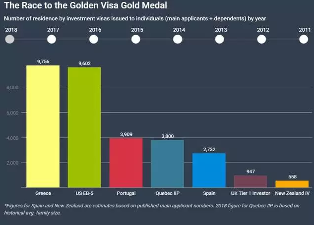 最出乎意料的是,希腊绿卡签发量直逼此前极为火爆的美国EB-5签证。在2018年投资移民签证发行数量排行榜中,希腊“黄金签证”首次夺得第一。