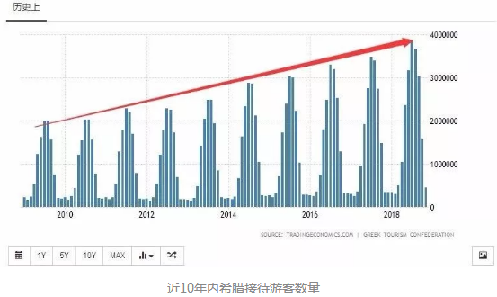 2018年希腊国际游客数量和旅游业收入均创下历史最高纪录。根据央行最新数据,2018年到访希腊的国际游客数量达到3300万,同比增长10.8%,旅游业收入超过161亿欧元,同比增长10.1%,连续10年希腊的旅游人数屡创新高,为希腊带来源源不断的旅游收入。