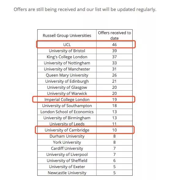 10个剑桥、19个帝国理工、46个伦敦大学学院!