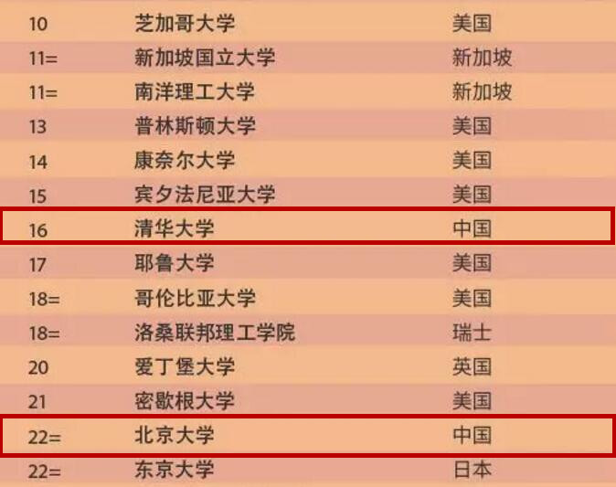 QS2020世界大学排名10-22位