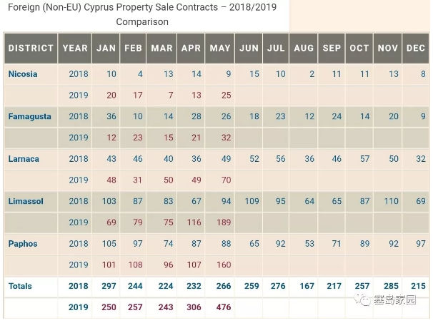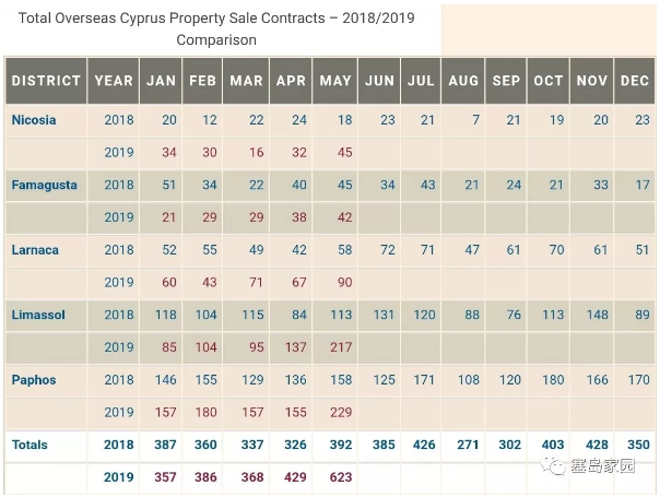 塞浦路斯国土资源部(Department of Lands and survey)发布的官方数据显示,2019年5月,塞浦路斯房地产销量飙升,达到2008年7月以来的最高水平,创下11年来单月销售量最高数据!