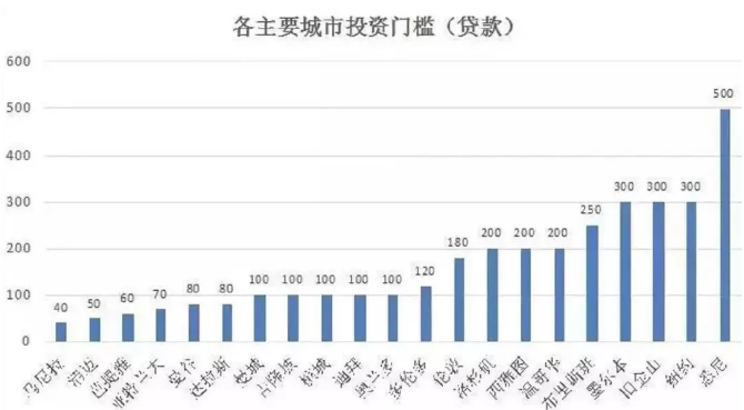 再详细一点说,现在海外主要城市的投资门槛(包含贷款)大致是这样的: