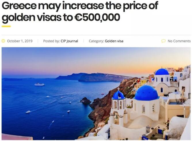 希腊“黄金签证”申请费从500欧上涨至2000欧,涨幅高达4倍!