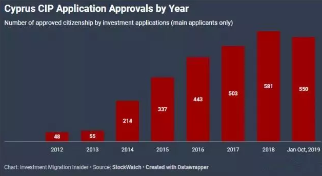 根据StockWatchCyprus发布的数据显示,今年1月至10月,有550名申请人获得了塞浦路斯投资移民身份计划申请案的批复,获批人数仅比2018年全年的申请获批数少31人。