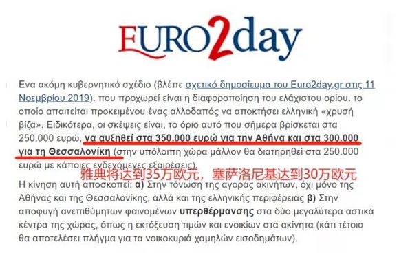 据希腊本地报道,雅典黄金签证预计涨价到35万欧元,塞萨洛尼基预计涨价到30万欧元,其他地区保持25万欧。