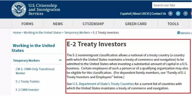 E-2签证是针对与美国有双边条约(商业贸易及航海协定)的国家的公民,这些公民来美国进行相当规模的贸易,包括科技与服务等贸易,并且主要是经营美国与协定国之间的贸易,或是在美国发展和经营一个其投资的企业,或是正在美国进行相当规模的投资,就可以申请E-2签证。