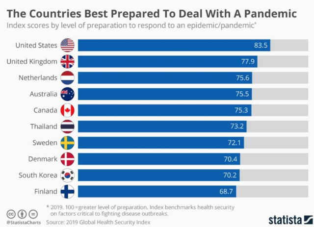全球卫生安全指数近日发布。该指数检测了世界上各个国家,是否随时做好准备,应对流行病或是大规模瘟疫。