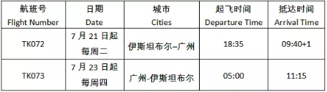 据中国驻土耳其使馆消息,土耳其航空于7月21日复飞伊斯坦布尔至广州航班。土耳其航空将采用波音777-300ER客机执飞上述航班,每周一班。