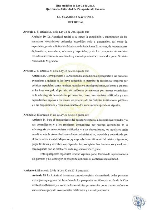 1. 立法目的:修改2013年第32号法律,设立巴拿马护照管理局,规范护照签发流程。