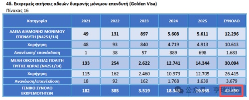 根据希腊移民局最新公布的2025年11月数据,截至2025年11月,希腊待处理的黄金签证申请数量减少至42,390件,这是自3月份改进措施开始以来最高的月处理速度。