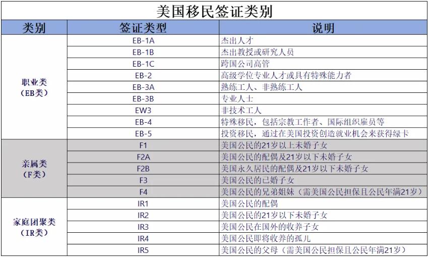 真正适合中国申请人因个人原因赴美的,主要有以下签证类别: